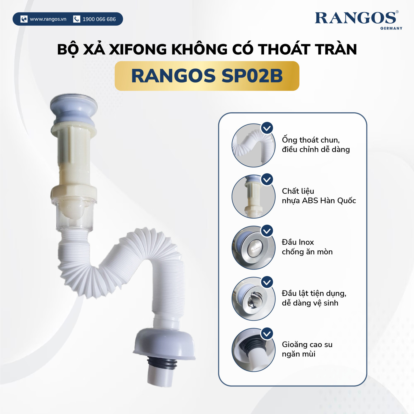 Bộ xả xifong không có thoát tràn Rangos SP02B