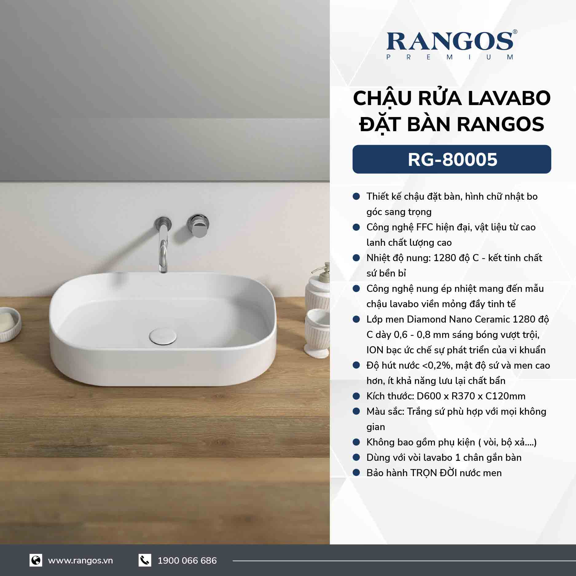 Chậu rửa lavabo đặt bàn Rangos RG-80005
