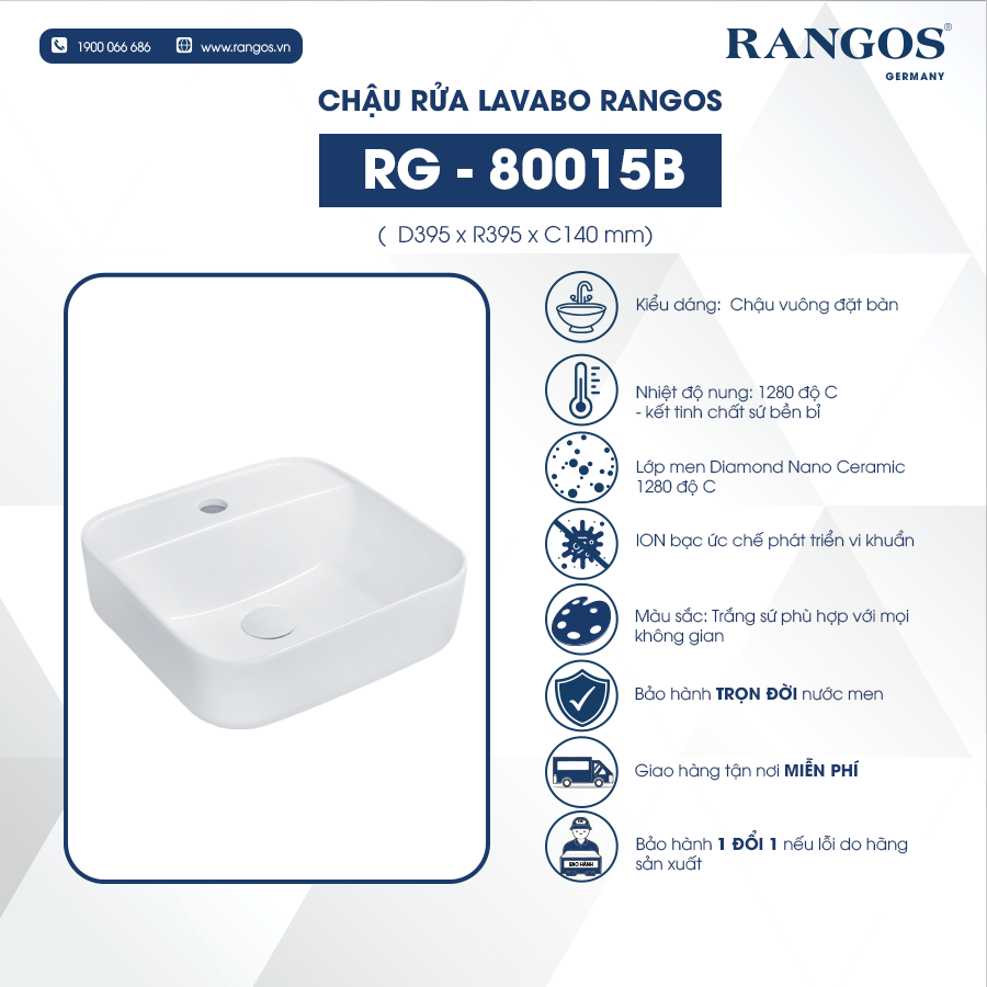 Chậu rửa lavabo đặt bàn Rangos RG-80015B