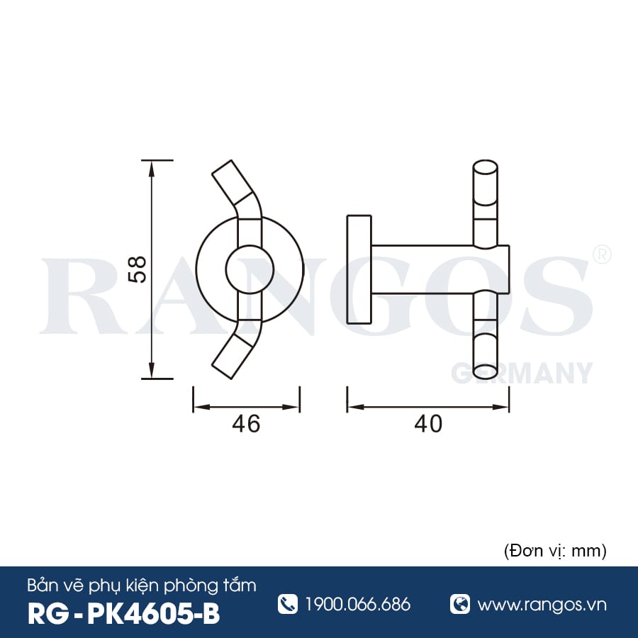 Móc treo khăn đơn 2 móc RANGOS RG-PK4605-B