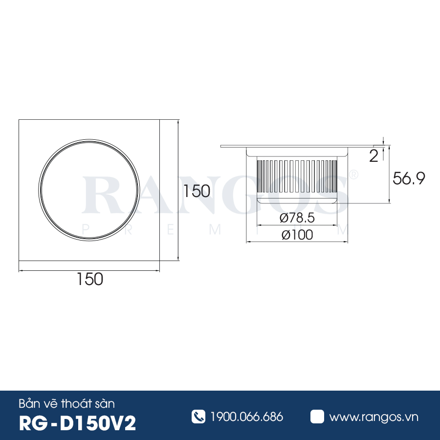 Thoát sàn nhà tắm cao cấp INOX 304 RG-D150V2