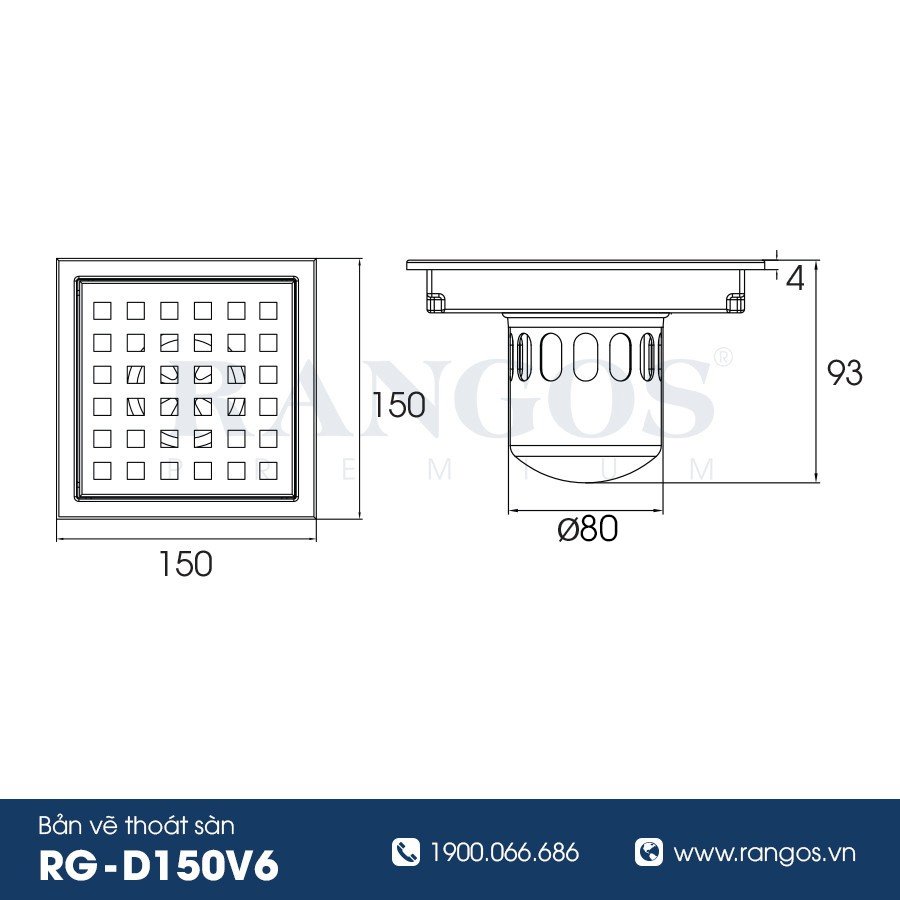 Thoát sàn nhà tắm cao cấp INOX 304 RG-D150V6